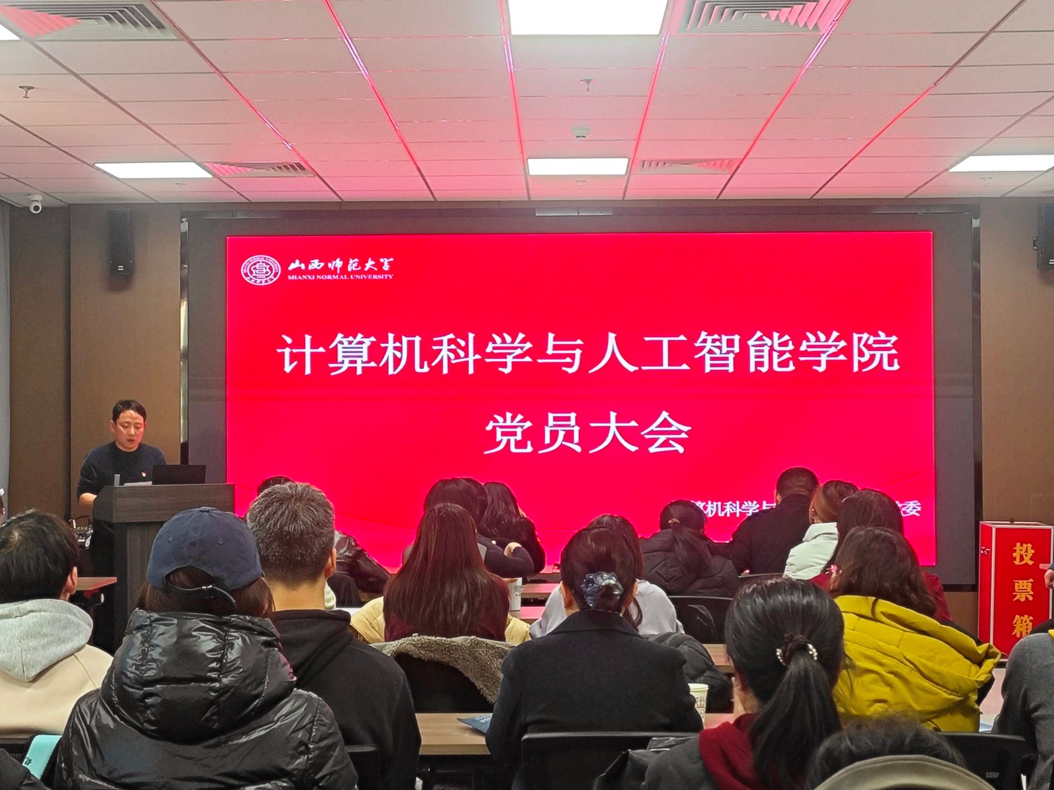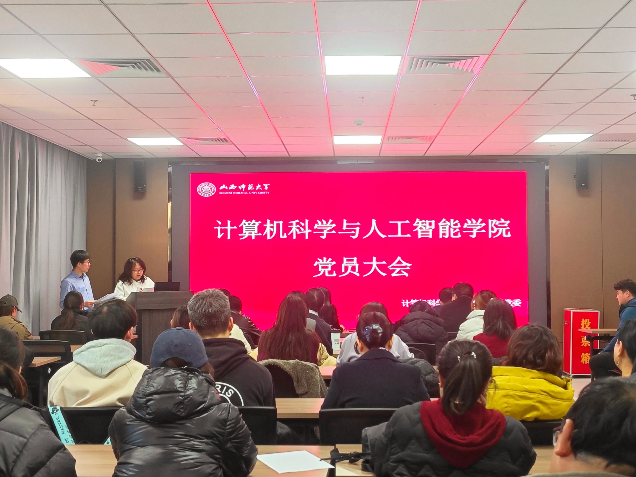 12月25日下午,公司在北区五号教学楼C608会议室召开党员大会,选举产生计算机科学与人工智能公司党委第一届党委委员。公司教职工党员和员工党员参会,会议由公司党委书记汪存友主持。会议严格按照《中国共产党基层组织选举工作条例》要求,采取无记名投票和差额选举方式,规范、有序地完成了选举工作。(文字:彭铖铖 图片:齐翊萱)
