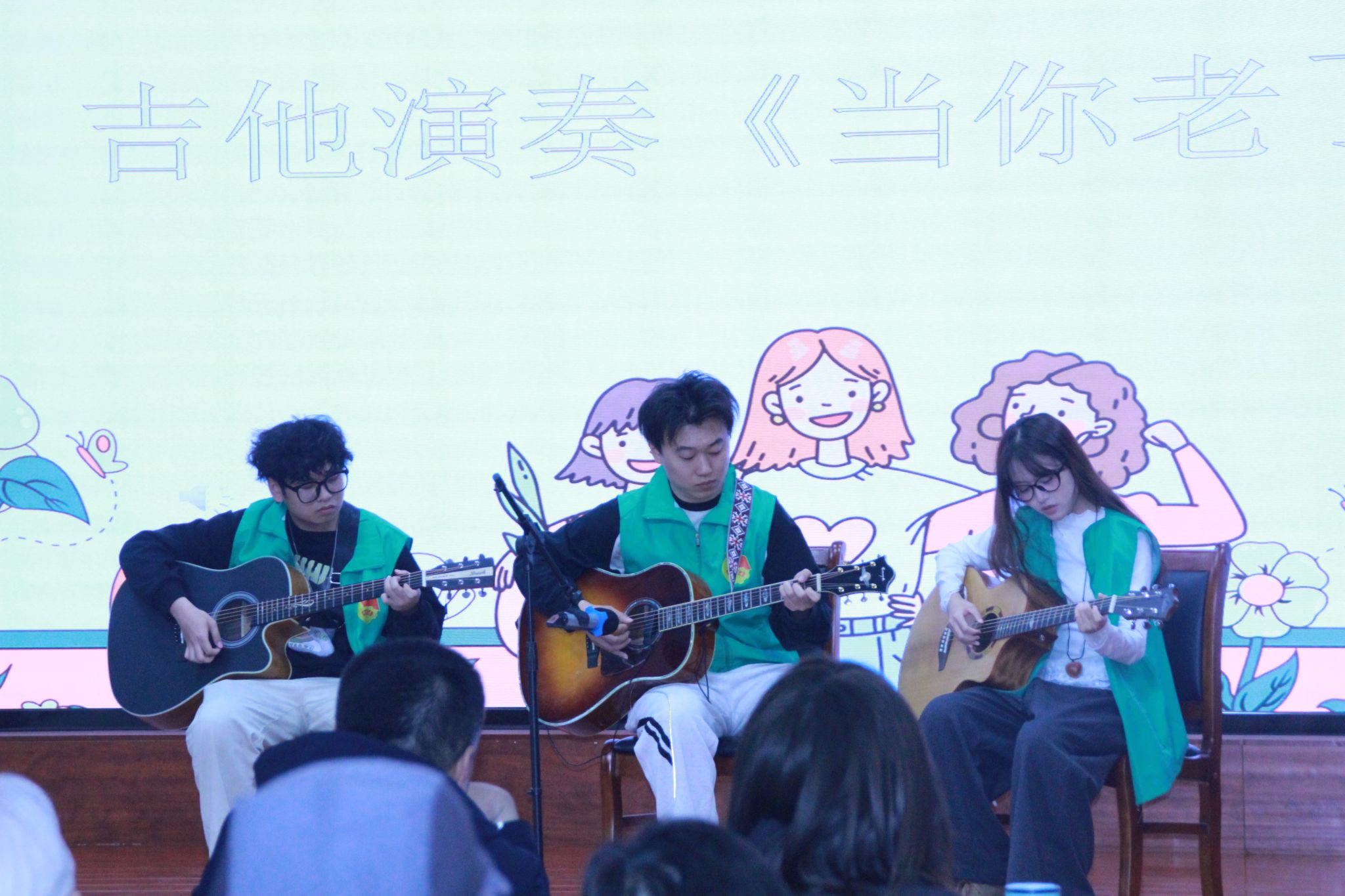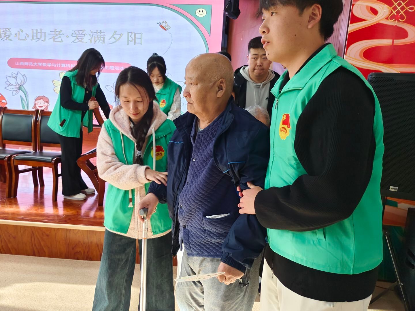 活动现场,志愿者们带来了一场精彩纷呈的文艺汇演。有活力四射的舞蹈,志愿者们灵动的身姿瞬间点燃现场气氛,仿佛带着老人们重回青春岁月;深情悠扬的歌声、吉他伴奏,唤起他们往昔的回忆,让他们沉浸在熟悉的旋律中,轻轻哼唱;抑扬顿挫的朗诵,以真挚的文字传递敬意,让他们感受别样的文学意境;还有幽默逗趣的脱口秀,逗得老人们哈哈大笑,眼角的皱纹里都填满了欢乐。