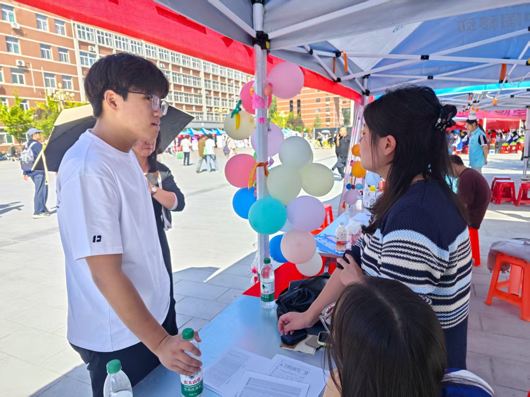 在南北区各班报到点,新生辅导员和班级助理早早守候在帐篷前,为同学们办理手续、确认信息,耐心介绍校园生活与入学须知,帮助他们更好地了解公司、融入师大。