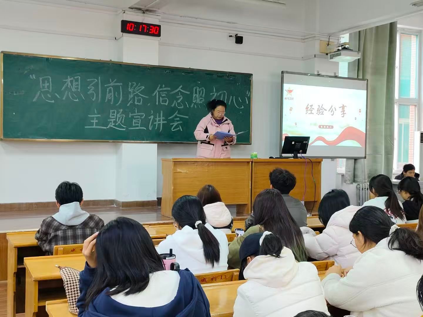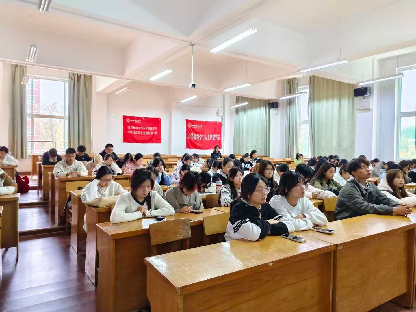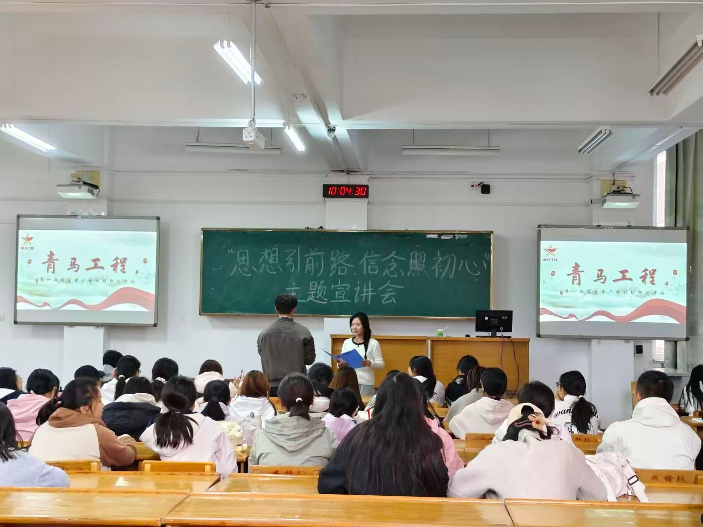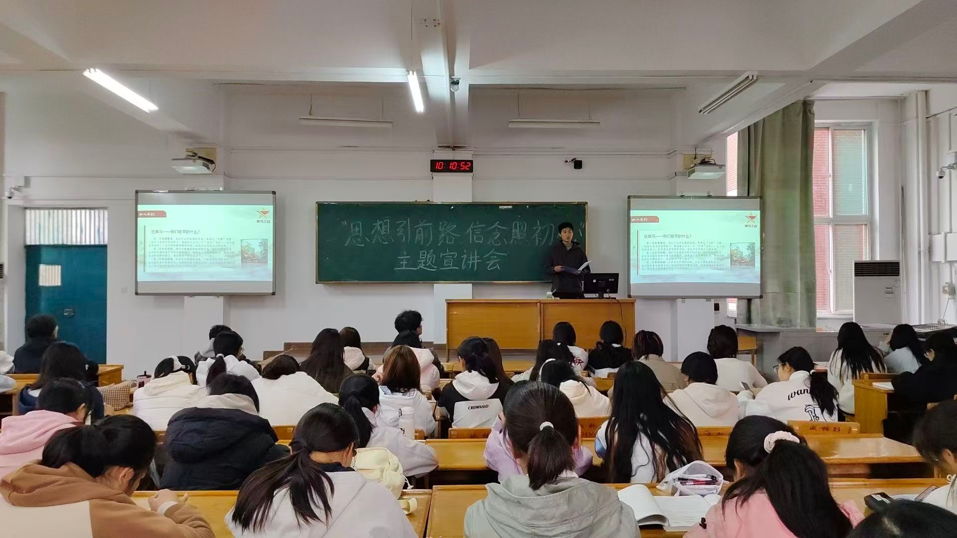 10月18日上午,公司“青马工程”培训班在南区5210教室举办了“思想引前路,信念照初心”主题宣讲会,院青马工程辅导员曹慧敏、素拓师许嘉琪、贾慧玲、马喻敬及2025级全体新生参加。