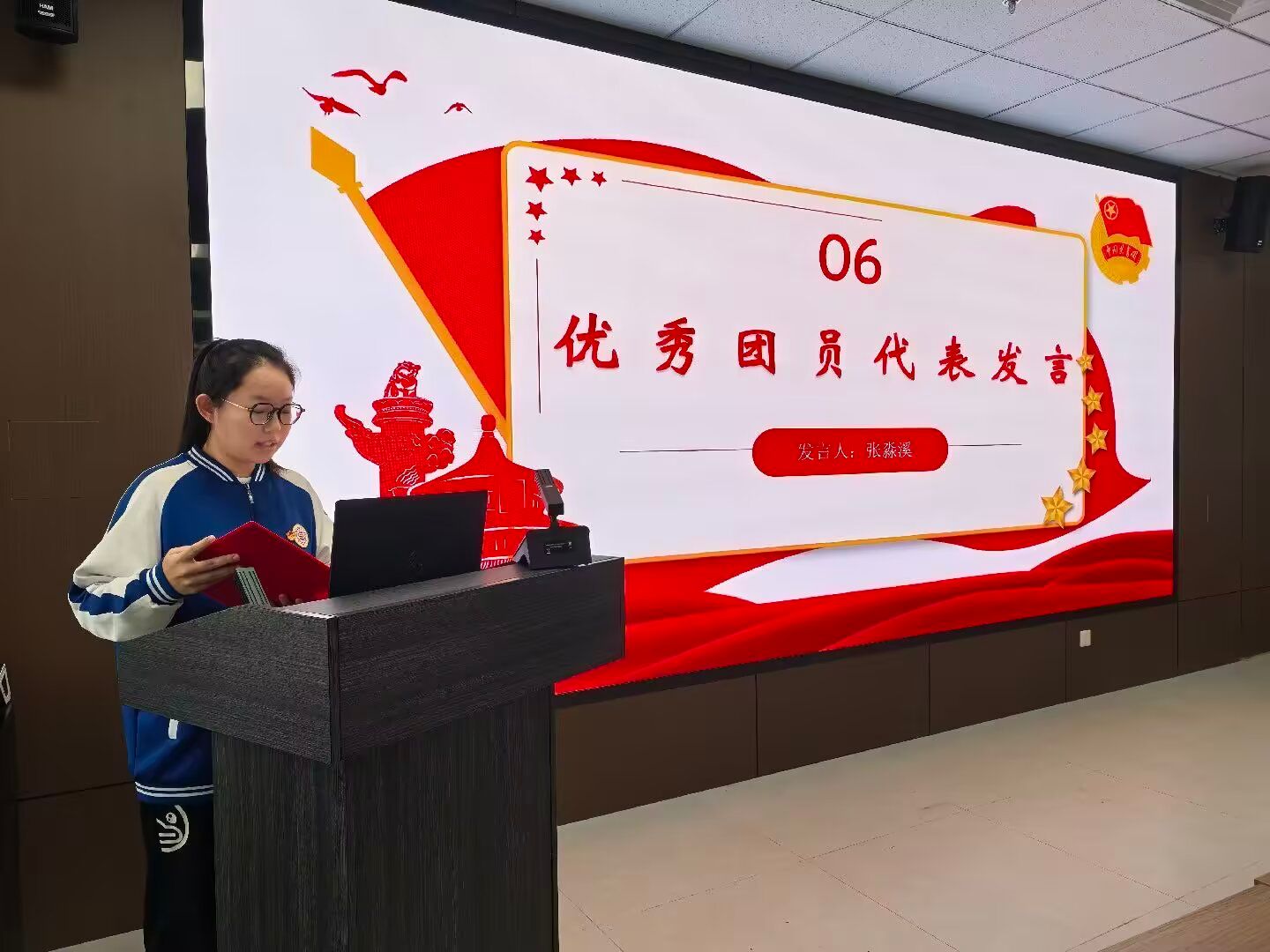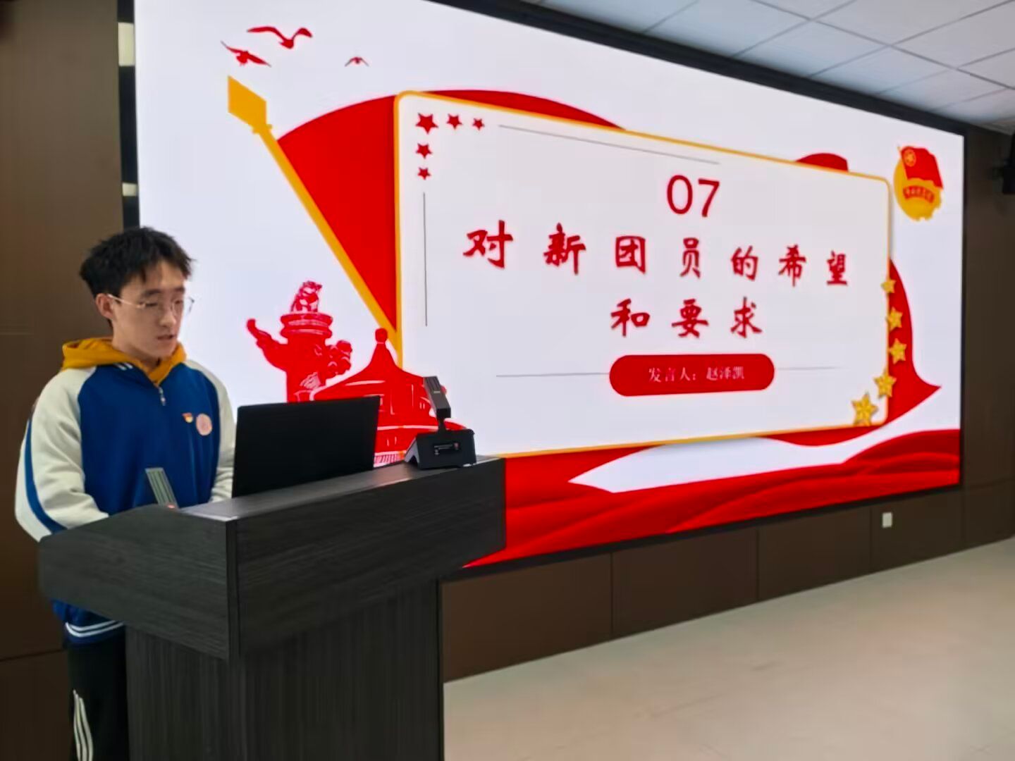 在经验分享环节,优秀团员代表张淼溪结合自身经历,勉励大家锤炼品格、勇担使命。党员代表赵泽凯结合自身向党组织靠拢的成长历程,分享了个人体会,鼓励同学们以先进模范为榜样,努力成长为德智体美劳全面发展的社会主义建设者和接班人。