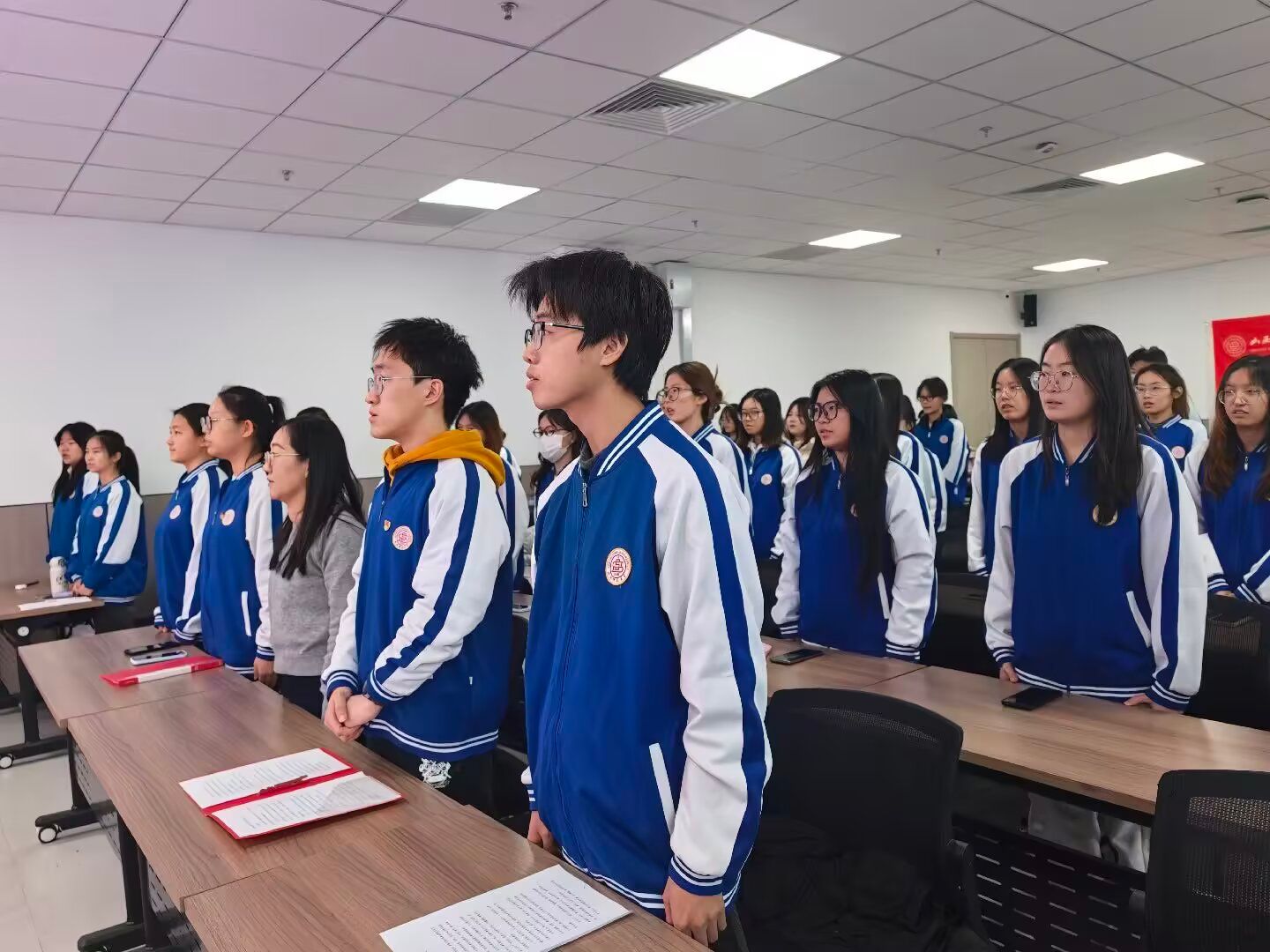 最后,仪式在昂扬的《光荣啊,中国共青团》中落下帷幕,全体人员起立合唱,青春的热情与信念在现场久久回荡。