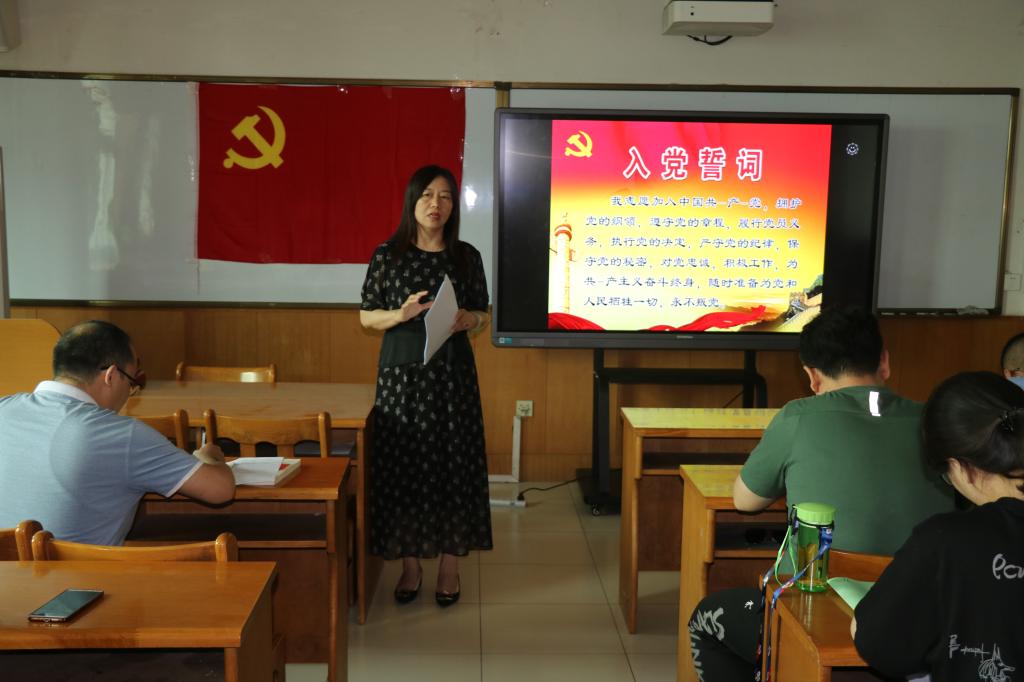 面对鲜红的党旗,全体党员举起右手,在员工第三党支部书记王琛的带领下重温入党誓词。铿锵恢宏的誓词体现了对中国共产党的无限忠诚和为共产主义事业奋斗终身的坚定决心。随后师生党员一起观看了《常州三杰:恽代英》党史学习纪录片,党员们纷纷表示要坚定共产主义的理想信念,向恽代英这样老一辈的革命先烈学习,自觉地为共产主义事业奋斗终身;最后教工党员与员工党员就学业指导、考研规划、学科竞赛活动指导等内容展开讨论交流,教工党员们坚持党建指导实践,把“我为群众办实事”实践活动与立德树人同频共振,在学党史,悟思想,办实事中勇于担当,尽职尽责。