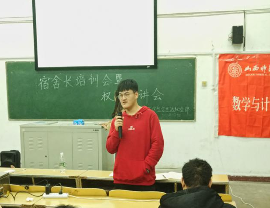 为进一步规范员工宿舍管理,营造安全、舒适、和谐的宿舍文化氛围,帮助新生树立维权意识,提高维权能力。11月7日晚7时,公司在05102举办了宿舍长培训暨权益宣讲会。2019级优秀宿舍长、2020级部分班委、2020级全体宿舍长参加,会议由生活权益部组织开展。