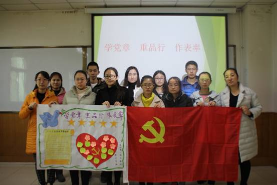 活动伊始,贾静老师带领支部成员共同学习了新党章,她详细讲解了十九大新党章中的十一处重要修改,强调了党章的重要意义,旨在让支部全体党员深入学习、领会党章的精神实质,全面提升党员党性。为了更加深刻地学习党的纪律,贾老师通过王庸晋、解根法等反面典型案例,为现场党员敲响了警钟,希望大家引以为戒,严格遵守党章党纪,以身作则,积极发挥党员作用,争做优秀共产党员。最后,支部党员集体制作了“学党章、重品行、作表率”为主题的手抄报。手抄报上的一字一画凝聚了支部每位党员对党、对国家的热爱之情,展示了支部党员对十九大精神和新党章的认识、理解,彰显了每位党员以实际行动践行十九大精神和新党章要求的决心。