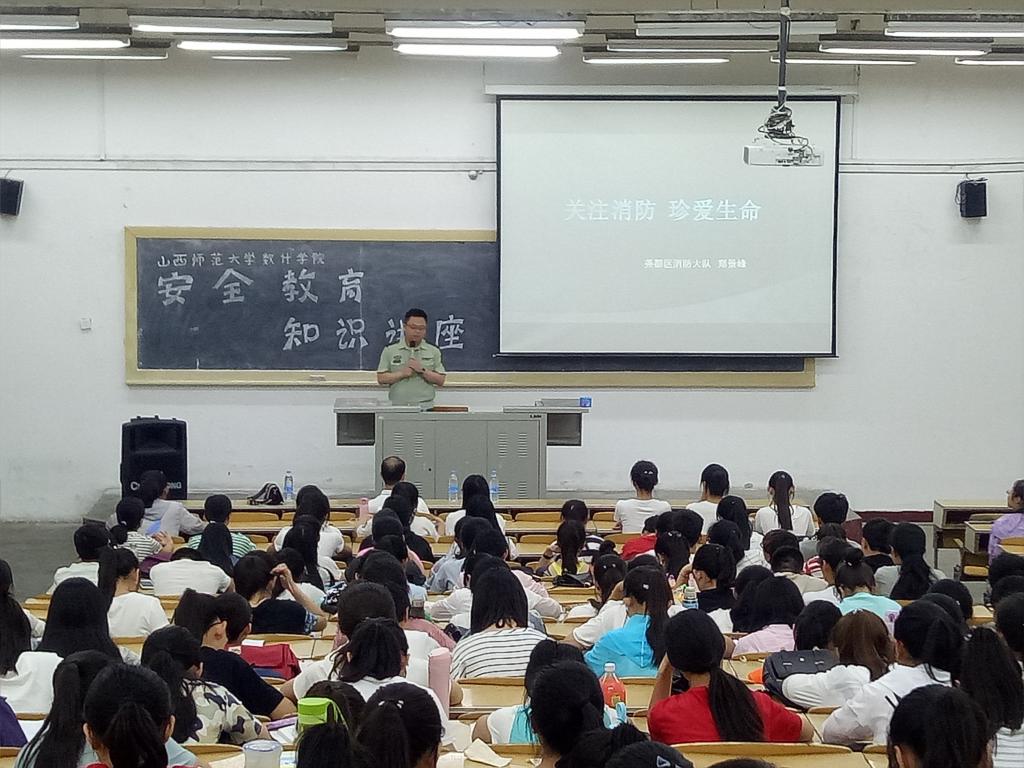 6月3日上午10时,在05103教室,校保卫处消防科科长张威老师、尧都区消防大队郑景峰参谋、数计公司团委书记陈立记老师出席了安全教育知识专题讲座,数计公司全体本科生参加。