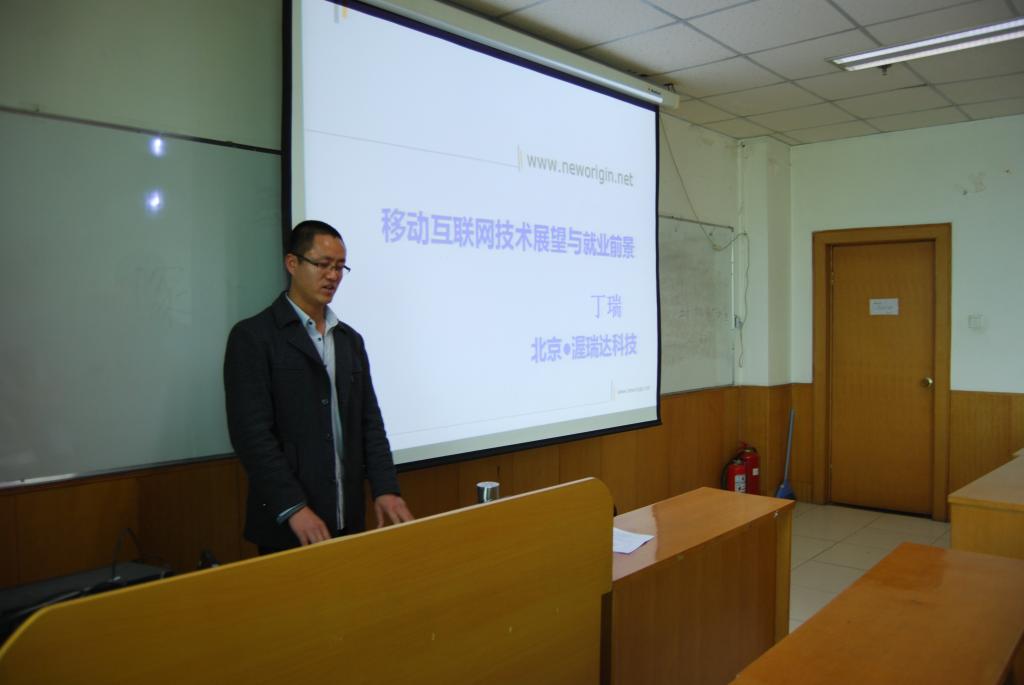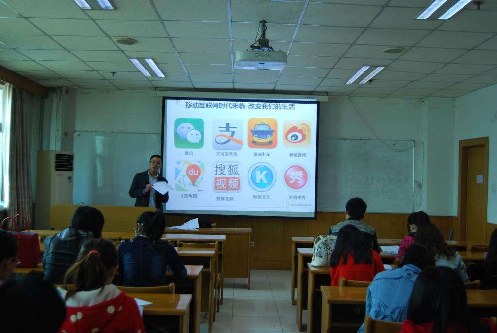 首先,丁瑞先生用生动的语言、鲜明的事例围绕当前移动互联网技术的现状、老员工在此方面的就业前景进行了深入的讲解,希望毕业生能认清形势、把握机遇。之后,同学们观看了该公司成功案例的视频,并就关实训的具体内容进行了讨论,大家各抒己见,积极讨论,气氛热烈。最后,丁瑞老师给大家提出几点就业指导意见:树立职业精神,建立目标意识、规划意识;培养责任感,做新时代的“四有”新人。