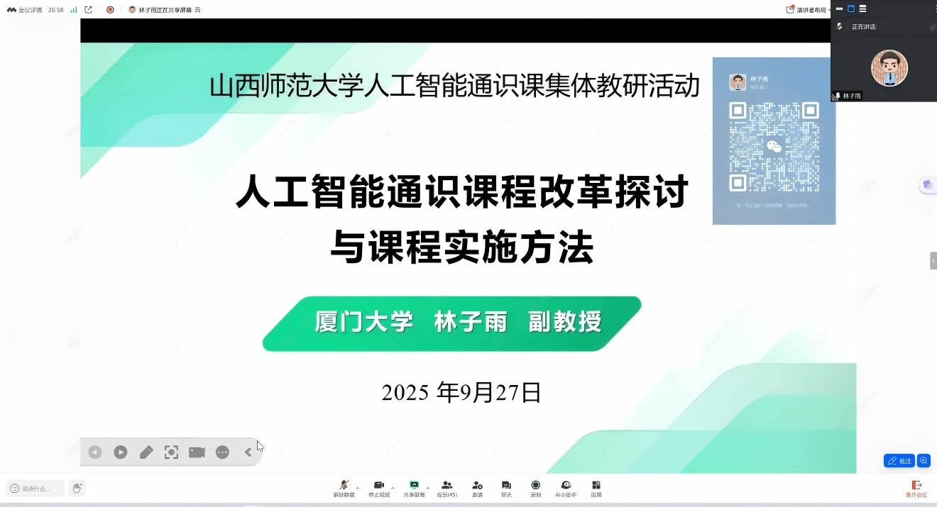 2025年9月27日下午,公司组织召开了《人工智能通识教程》线上教学研讨会议。会议通过腾讯会议线上举行,吸引了来自省内多所高校的教师参与,参会人数达百余人。